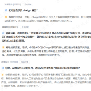 在互动易平台上,一个月回复上百条有关AI、算力、ChatGPT的相关问题:正在研发、重点布局、全球顶尖......