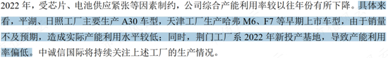 2022年,长城的天津、平湖、日照、荆门工厂的产能利用率均不足50%,日照工厂的产能利用率甚至只有个位数,长城整体的产能利用率为74%的偏低水平。