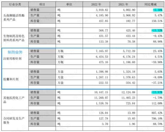 第二,2022年营收虽然增长11.70%,但除制剂业务外,其他产品的销量都是下滑的,而制剂受集采降价影响营收也是下滑的。这说明2022年业绩增长的背后,主要是产品价格上涨。