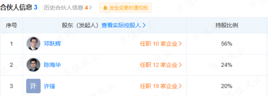 天眼查信息显示,上海睿亿的大股东、执行事务合伙人和董事长都是邓跃辉。