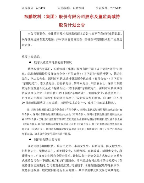 虽然在二级市场中,高位清仓式减持并不罕见,但5月29日东鹏饮料(605499.sh)的一则减持公告,还是吓呆了二级市场。