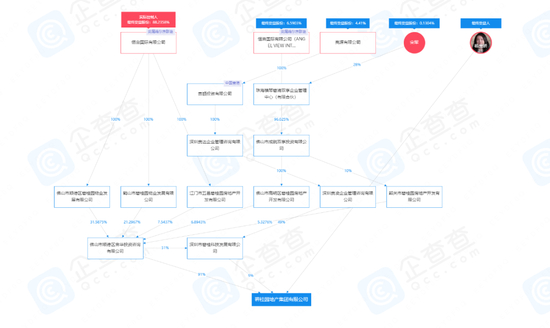 股权关系上,佛山市顺德区宙华投资咨询有限公司持有碧桂园地产集团91%股权,剩下的9%则由深圳市碧桂科技发展有限公司持有。最终由碧桂园的境外公司恒宇国际实际控制。