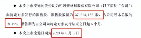 明冠新材股价下跌,有股民认为和定增(向特定对象发行股票)对象的限售股解禁有关。