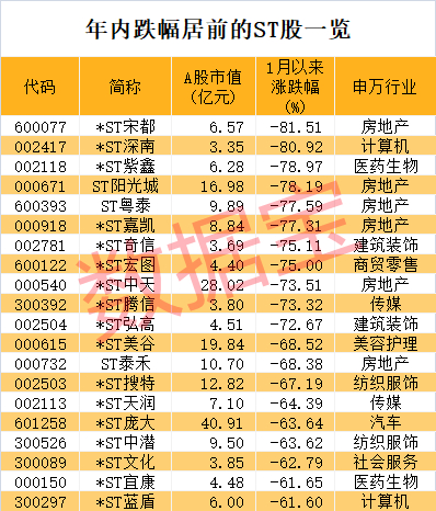 数据宝统计,今年以来ST股平均跌幅22%,大幅跑输同期上证指数。32只ST股今年以来跌幅超50%。跌幅最高的是*ST宋都,年内累计下跌81.51%。该股已连续16个交易日收盘价低于1元,触及交易类退市指标。