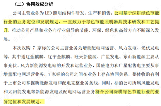 但正所谓“无理也能辩三分”,这句话在上市公司这里体现得淋漓尽致:原有的LED灯业务是以绿色节能为核心定位,收购新能源公司则是对原有定位和规划的拓展和深耕。