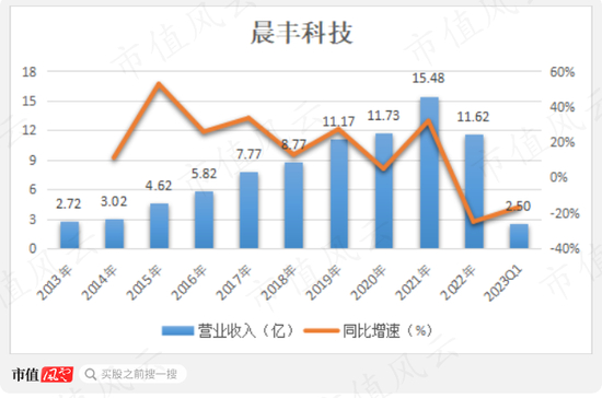 2023年一季度,晨丰科技营收2.5亿,同比下降16.77%,连停滞都难以为继。