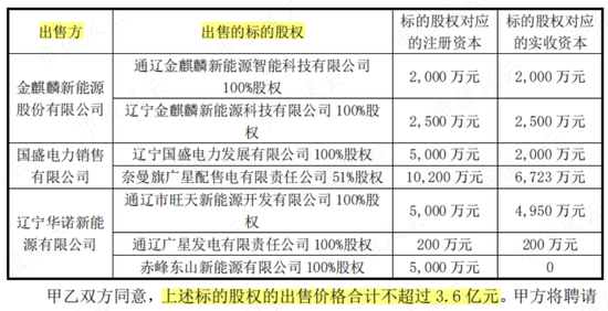 2023年5月10日,晨丰科技披露,拟以不超过3.6亿元,现金收购7家标的公司:通辽金麒麟、辽宁金麒麟、国盛电力、广星配售电、旺天新能源、广星发电、东山新能源公司,而出售方之一就是上文提过的金麒麟。