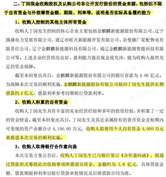丁闵表示,将自掏腰包4,000万,从银行借款3.8亿,再从控制企业金麒麟借款4亿,这不就够了!