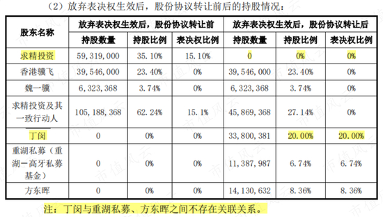 虽在持股比例上不及香港骥飞,但限于表决权放弃协议,丁闵将持有最大的表决权比例,成为上市公司新任实控人。