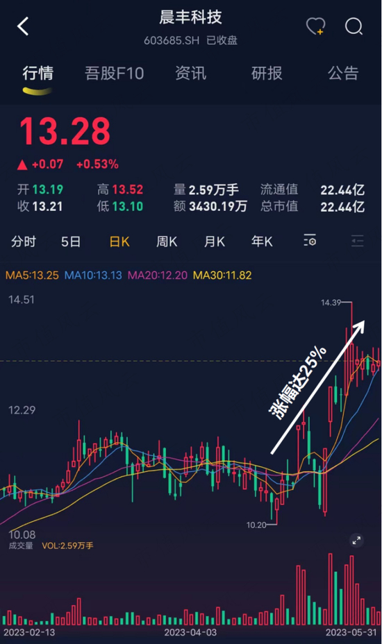 或许正是搭上新能源概念,晨丰科技的股价噌噌猛涨,5月份涨幅达25%。