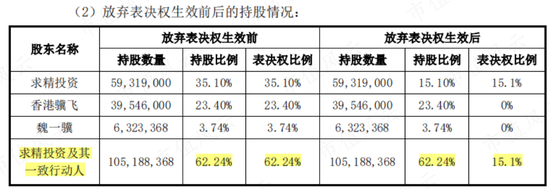 第一步,放弃表决权。即控股股东求精投资及一致行动人香港骥飞、魏一骥,不可撤销地放弃其合计持有的47.14%股权对应的表决权。