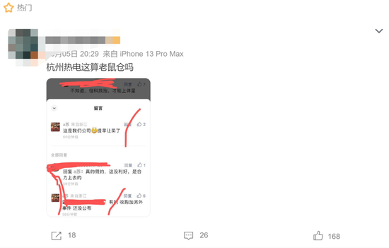 不过,也有观点认为,这是得到了内幕消息的投资者在提前炒作利好。微博中就有网友晒出截图,其中一位读者留言称自己是杭州热电员工,收购和另外的事件还没公布。