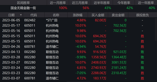 从交易记录上看,国金无锡金融一街是股市常客,今年以来已经在西安旅游、通达动力、宁波富邦、福斯达等19只股票中现身。而具体到杭州热电,其于5月15日买进后,很快于5月16日/17日卖出,卖出金额比买入多了8万余元。
