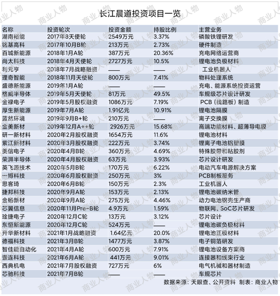 长江晨道投资项目一览