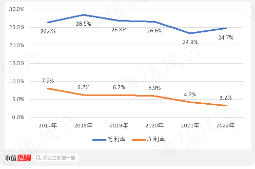 大禹节水的毛利率特别是净利率不断下滑,2022年整个公司净利率只有3.2%!