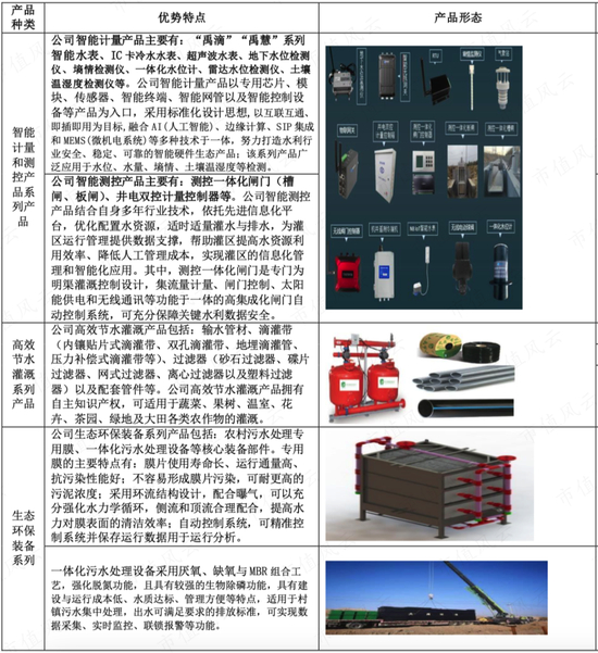 制造产品有节水灌溉产品、智能计量和测控产品,还有污水处理设备。