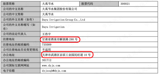 大禹节水的注册地就在西北的甘肃省,不过办公在天津。