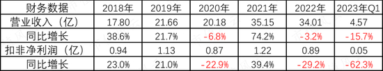 2022年和2023年第一季度,大禹节水营业收入和扣非净利润均出现下滑,尤其是扣非净利润同比下降更明显。