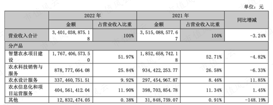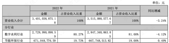 2022年营业收入为34亿,其中数字水利业务有27.3亿,占比80.27%;节能环保业务有6.7亿,占比19.73%。