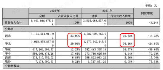 (营业收入按地区划分)
