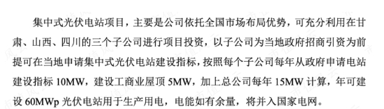 属于工商业光伏,采用租赁投资或业主投资方式,以“自产自用、余电上网”的售电方式运营,计划3-5年装机规模达1GW。