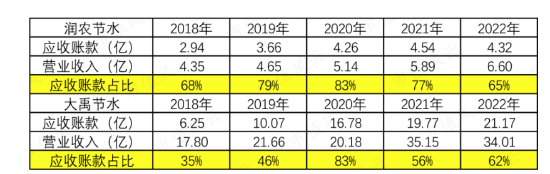 润农节水应收账款和存货分别占了总资产的40%和28%,更极端。
