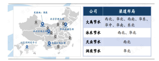 渠道布局上,大禹节水分布西北、华北、西南全国各地,润农节水主要在华北。