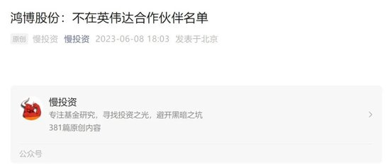 对此,专注于资本市场研究的自媒体“慢投资”则提醒投资者,鸿博股份此前多次蹭热点,如今跨界也是完全蹭英伟达讲故事。“慢投资”还援引英伟达内部人士的表态,“我们目前不会跟小公司合作”。