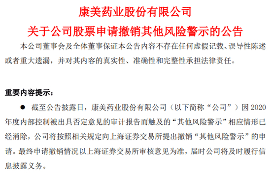 筹划一个多月后,ST康美主动撤回“摘帽”申请。不过公司在最新公告中表示,“满足了前述撤销其他风险警示的基本要求”。