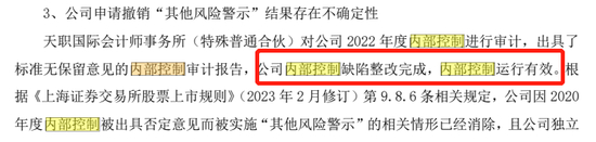 ST康美表示,公司内控缺陷整改完成,内部控制运行有效。根据《上海证券交易所股票上市规则》(2023年2月修订)相关规定,公司因2020年度内控被出具否定意见而被实施“其他风险警示”的相关情形已消除。