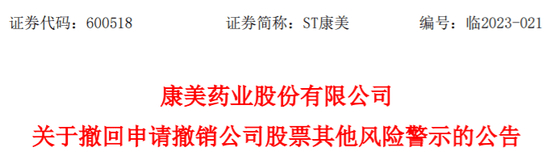 ST康美公告称,此次决定撤回相关申请,主要是从保护投资者利益、充分揭示后续不确定性风险的角度出发。