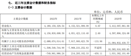 图为:ST康美2022年年报部分财务数据