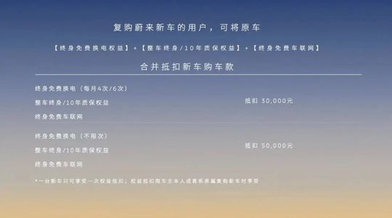 刘洋还补充道:“对于已经提车的用户,首任车主权益保持不变,但可以根据自己的需要,在复购蔚来新车的时候,可以选择放弃原有免费换电权益,并抵扣为新车购车款。”
