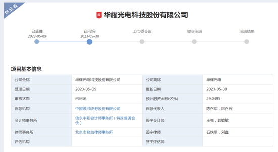 今年5月,华耀光电科技股份有限公司(下称“华耀光电”)向创业板递交了招股说明书,预计融资金额为29.05亿元,目前的审核状态为“已问询”。