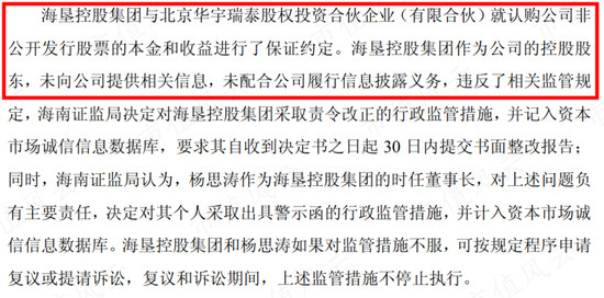 换句话说,海南证监局早就知道相关风险,并且是在造假5年之后才予以披露,已经非常委婉,甚至于可以说颇为纵容了。