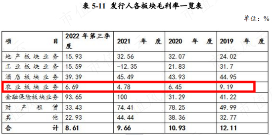 但是,农业板块却是海垦集团旗下盈利能力最差的一块业务,2019-2021年毛利率分别只有9.2%、6.5%、4.8%,还逐年下降。