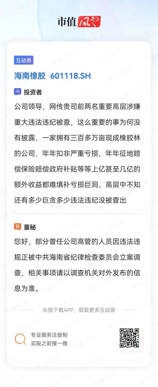 此外,在2022年年报中,由于前高管等人员正在被海南省纪检委立案调查,涉及发出商品7253万元,海南橡胶年报被出具了保留意见的审计报告。