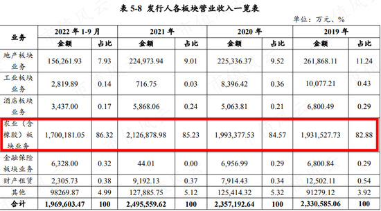 海垦集团旗下拥有农业、地产、金融保险、工业等板块,其中农业板块贡献的收入最多,且海南橡胶是主力。