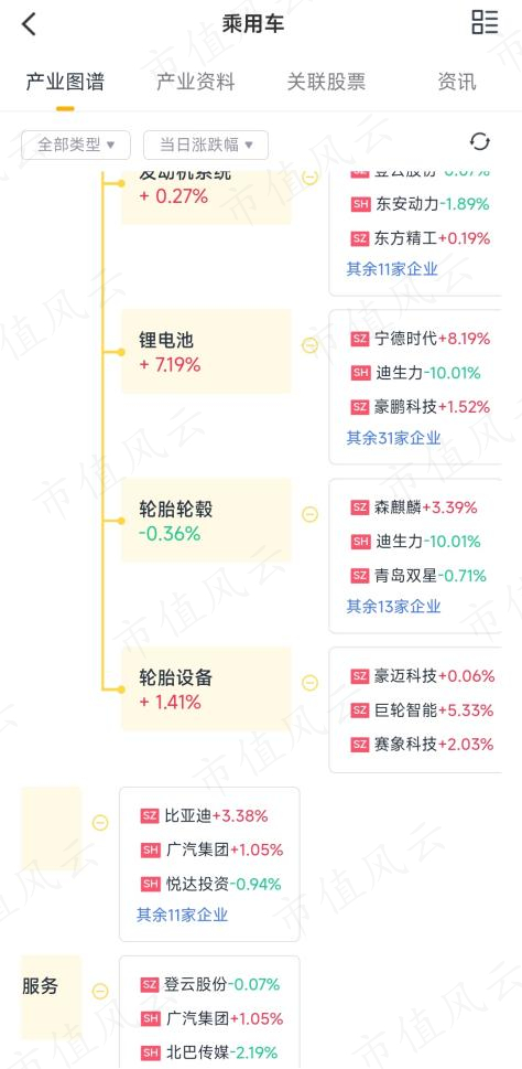 (市值风云APP汽车产业链图谱)