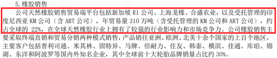 在2019年收购新加坡橡胶贸易和加工公司R1、2022年收购合盛农业之前,上海龙橡就是公司最主要的橡胶贸易平台。