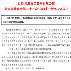 6月18日,在前总裁、董事兼副总裁辞职背景下,达刚控股表示已成功聘任王妍、黄明二人补位。同期,王妍还被推选为公司新董事,董事补选则将于6月28日股东大会上审议。