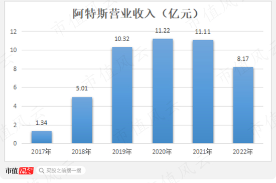 但随着消费电子的浪潮退去,“裸泳”的阿特斯一眼便知,业绩开始走起下坡路,2022年收入仅有8.17亿,下滑了近三成。