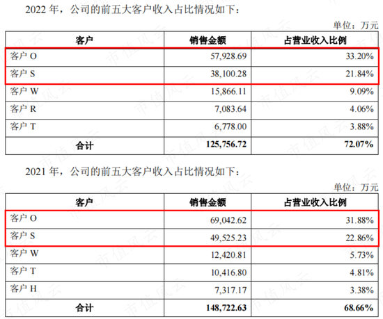 但某种程度上,智动力又是幸运的,早早就绑上了大客户,前五大客户的收入占比基本保持在七成以上,甚至IPO冲刺时达到93%。