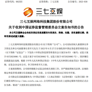 6月27日晚间,三七互娱(002555)发布公告称,因涉嫌信息披露违法违规,证监会决定对公司、公司实际控制人兼董事长李卫伟和副董事长曾开天立案。该消息一出,在游戏行业乃至资本市场引发热议。