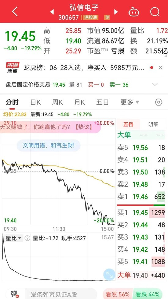 4月底,弘信电子盘中创出11.52元的低点。5月中旬开始,该股开始持续走高,半个月内大涨五成。不过,弘信电子6月28日在创出25.85元的年内新高后,午后突然大跌,最终重挫近两成。有消息称,其闪崩或与杀猪盘有关。