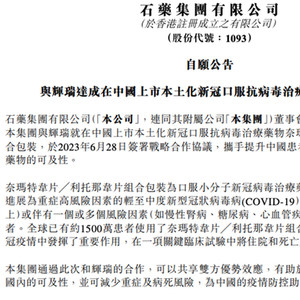 石药集团称,通过此次与辉瑞的合作,可以共享双方优势效应,有助于提高新冠抗病毒药物在国内的可及性,并可减少重症及病死风险,为疫情防控助力。