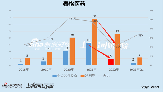 我们发现,公司2022年,非经常性损益由上一年的16亿元骤降为5亿元,降幅超过70%。公司的非经常性损益对当期利润占比由上一年的48%下降为21%。