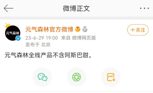 此外,佳禾食品表示,公司产品未使用阿斯巴甜;元气森林在其官方微博发布消息称:“元气森林全线产品不含阿斯巴甜。” 奈雪的茶相关负责人则对外表示,2022年11月,奈雪的茶已经宣布全部产品使用升级的天然代糖“罗汉果糖”。