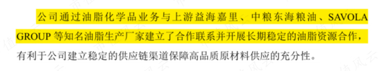 据披露,公司一度依赖的企业供应商资源,正是积累自其早期与金龙鱼、中粮集团等客户开展的油脂化学品业务。