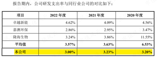 近年来,公司研发费用率维持在3%左右,略低于卓越新能(4.6%)和行业平均水平(3.6%)。